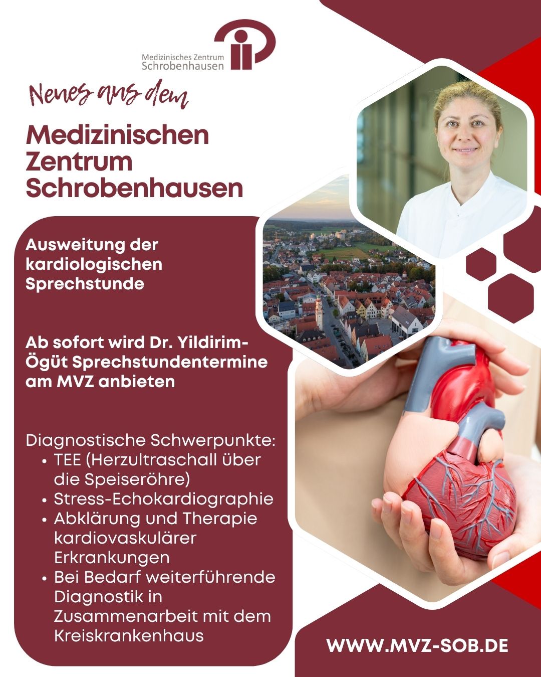 Das Medizinische Zentrum Schrobenhausen erweitert ab sofort seine kardiologische Sprechstunde. Dr. Yildirim-Ögüt bietet künftig Termine im MVZ an und stärkt damit die herzmedizinische Versorgung vor Ort.
