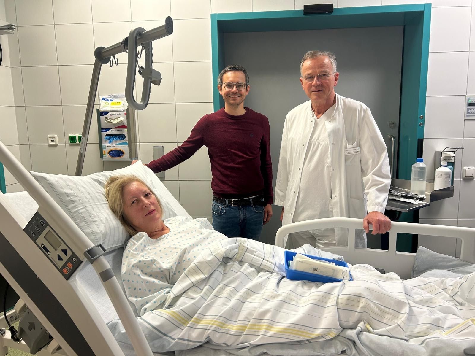 Die erste Patientin Frau Cäcilia Lang (Foto) freut sich über den erfolgreichen Eingriff und zeigt sich bei der abendlichen Visite durch den Chefarzt hoch zufrieden. Die ambulante Nachkontrolle erfolgte zwei Tage später ebenfalls im Kreiskrankenhaus. „Uns geht es darum, moderne und schonende Therapien direkt vor Ort anzubieten, ohne, dass unsere Patientinnen und Patienten dafür weite Wege auf sich nehmen müssen“, erklärt der Chefarzt.