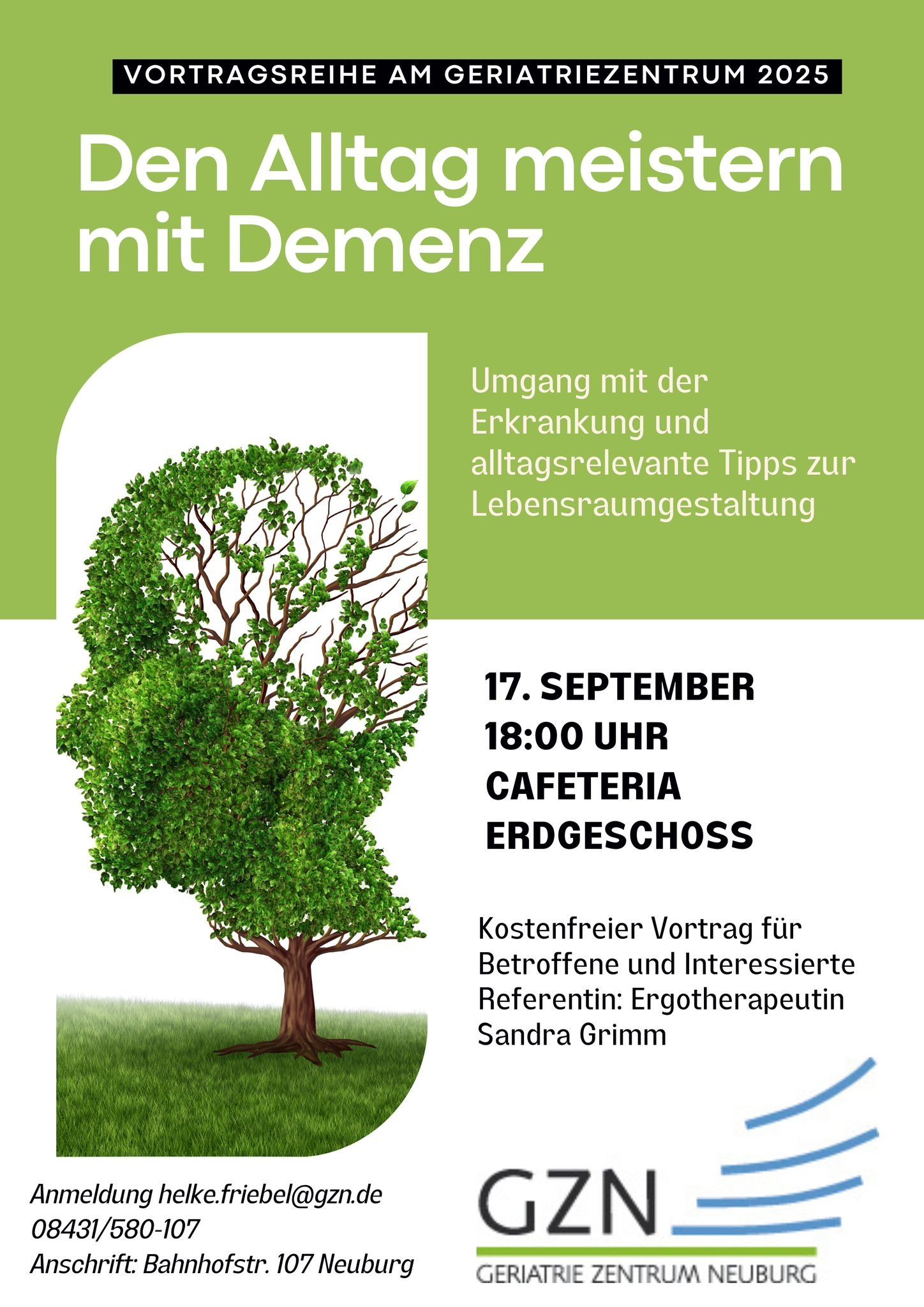 Am 17. September 2025 wird Frau Grimm, eine erfahrene Ergotherapeutin am Geriatriezentrum Neuburg und Bachelor of Health in Occupational Therapy, einen Vortrag mit dem Titel „Den Alltag meistern mit Demenz“ halten. In diesem praxisorientierten Vortrag geht Frau Grimm auf den Umgang mit demenziellen Erkrankungen und die Gestaltung des Alltags ein. Sie gibt wertvolle Tipps zur Optimierung des Lebensraums für Menschen mit Demenz und stellt Strategien zur Verbesserung der Lebensqualität der Betroffenen vor.