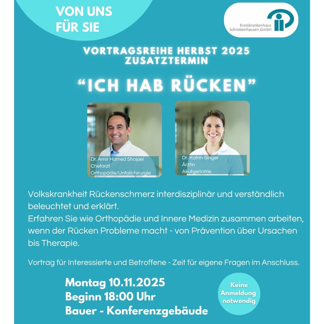 Referenten: Dr. Amir Hamed Shojaei, Chefarzt Orthopädie/Unfallchirurgie Dr. Katrin Singer, Ärztin Akutgeriatrie